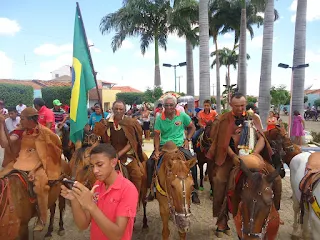 a cavalgada com a Imagem de Nossa Senhora Aparecida fazendo o percurso pelas principais