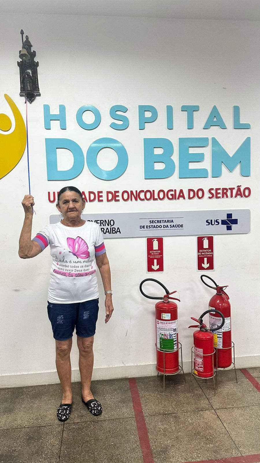 Logo na entrada do Hospital do Bem – unidade da rede estadual de saúde especializada em Oncologia, no Sertão, que integra o Complexo Hospitalar Regional Deputado Janduhy Carneiro (CHRDJC), em Patos, há um sino pendurado na parede da recepção. E o equipamento não está lá por acaso, nem sem função. Ele é tocado por cada paciente que recebe a notícia de que a saúde venceu a doença. E nessa quinta-feira (11), o som do sino ecoou no ambiente mais uma vez e, desta vez, por causa da remissão completa da doença da Sra. Arlinda Pereira da Silva. A boa notícia foi dada durante a consulta com o oncologista Silas Negrão, que comunicou à paciente que não havia mais sinais de células cancerígenas em seu organismo.