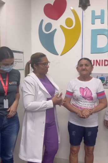 Moradora da zona rural de Santana dos Garrotes, do Sítio Maracujá de Baixo, a agricultora, desde 2019, se tratava no Hospital do Bem. Ela descobriu a doença após sofrer com hemorragias recorrentes. “Fui ao médico, ele pediu exames e identificou a doença. Pouco tempo depois eu fiz a histerectomia total e, logo em seguida, comecei o tratamento no Hospital do Bem, local que tão bem me atendeu, que tem uma equipe maravilhosa e é muito organizado. A eles, e a Deus eu devo minha cura”, afirmou ela.